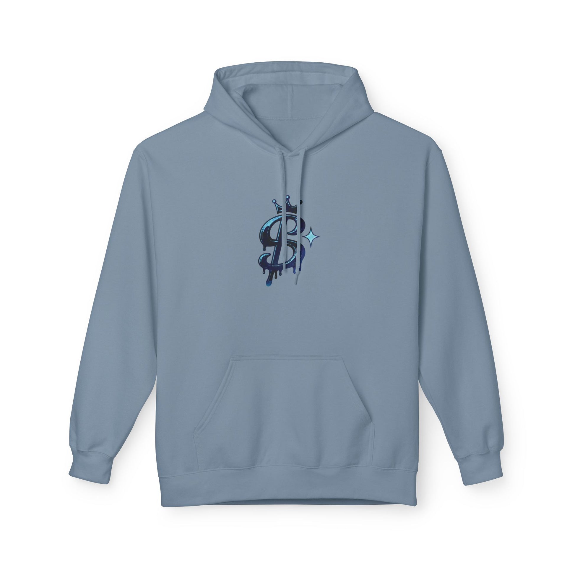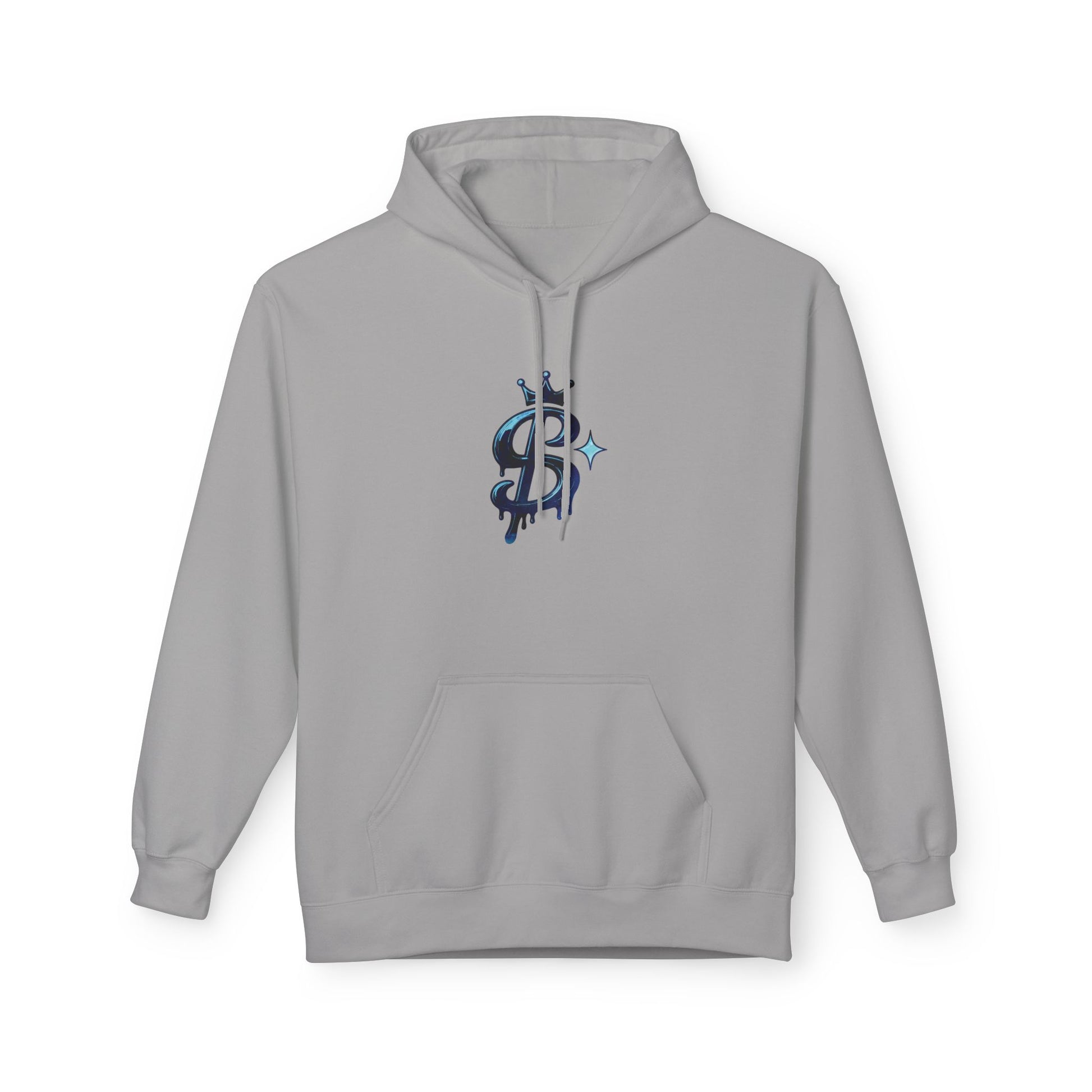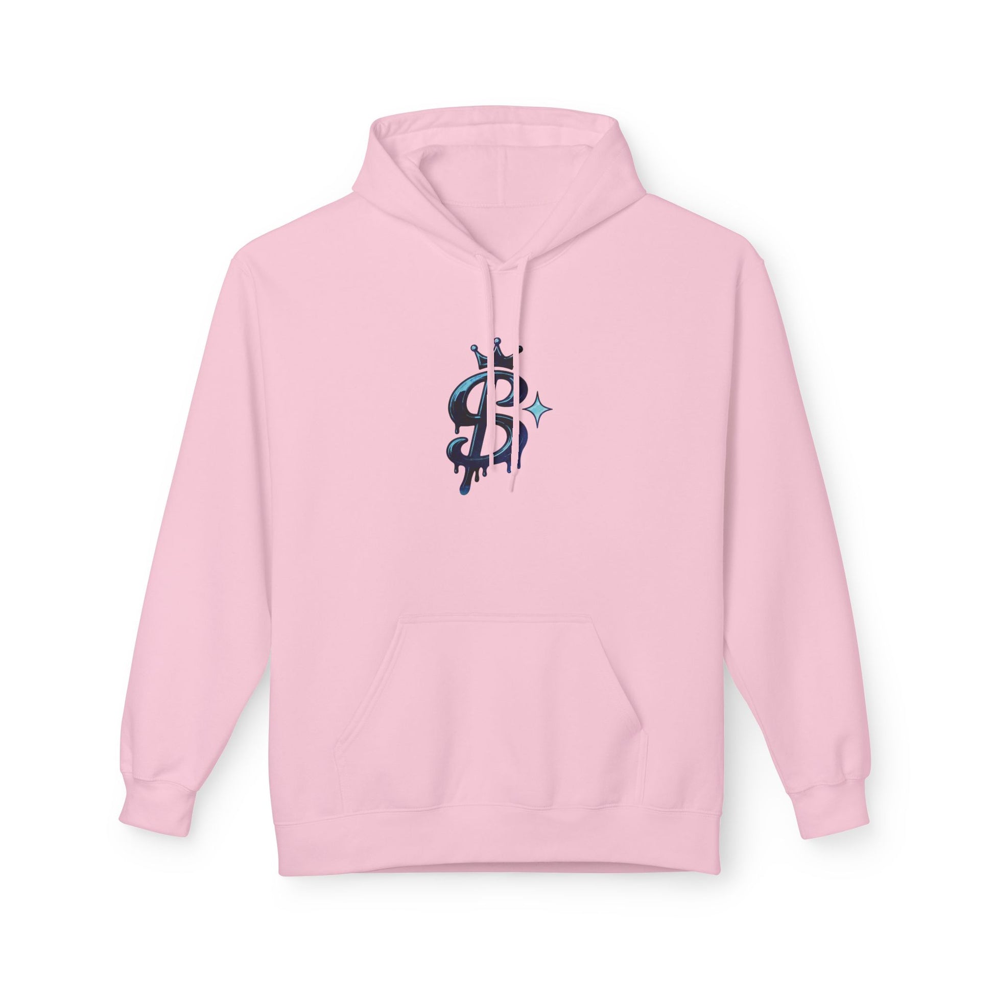 A soft midweight hoodie that wears like a quiet statement. The clean white fleece frames a small, stylized emblem at the chest—an artful dollar-sign split by a narrow slash and offset with a tiny sparkle. It feels deliberate and a little rebellious: cozy enough for morning coffee runs, but designed to hold its own at late-night meetups, open-mic nights, or street-style strolls. The relaxed drop-shoulder silhouette and roomy pouch pocket make it simple to layer over tees or hoodies, while the 2-piece lined hood gives extra warmth without bulk. Thoughtfully produced with OEKO-TEX and socially responsible certifications, this hoodie blends everyday comfort with a subtle edge and conscience.