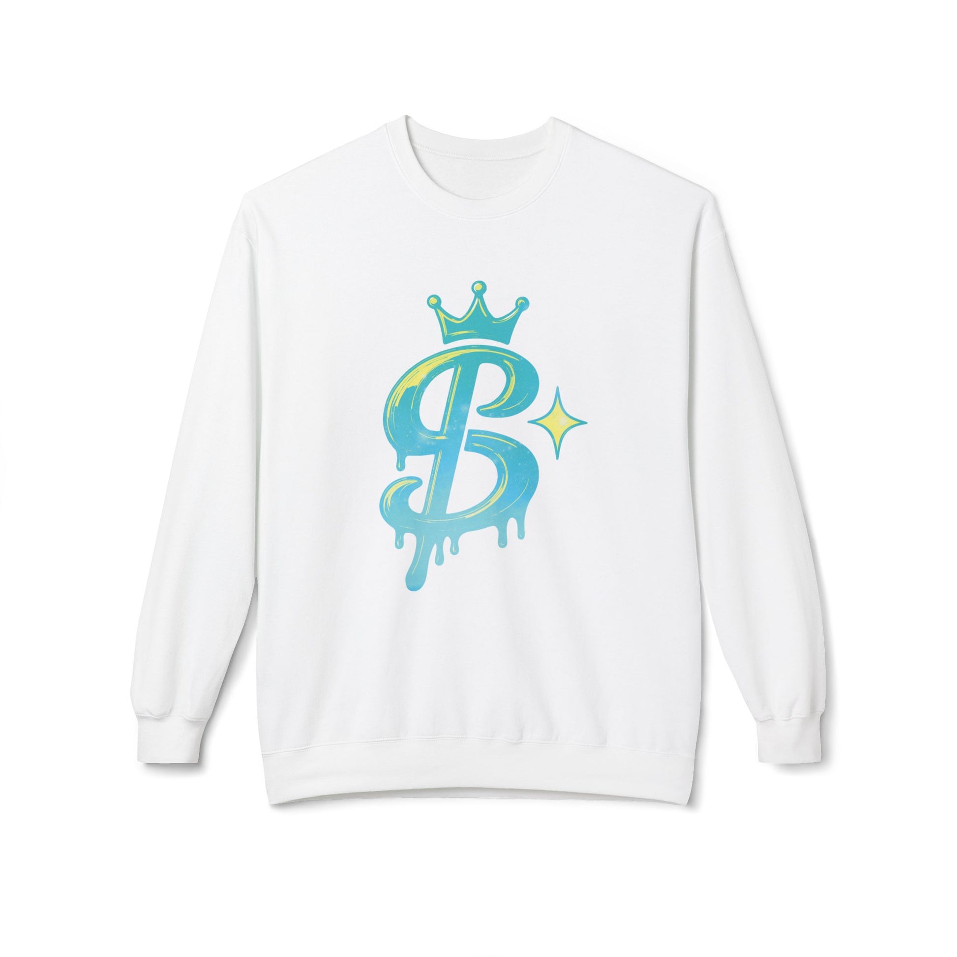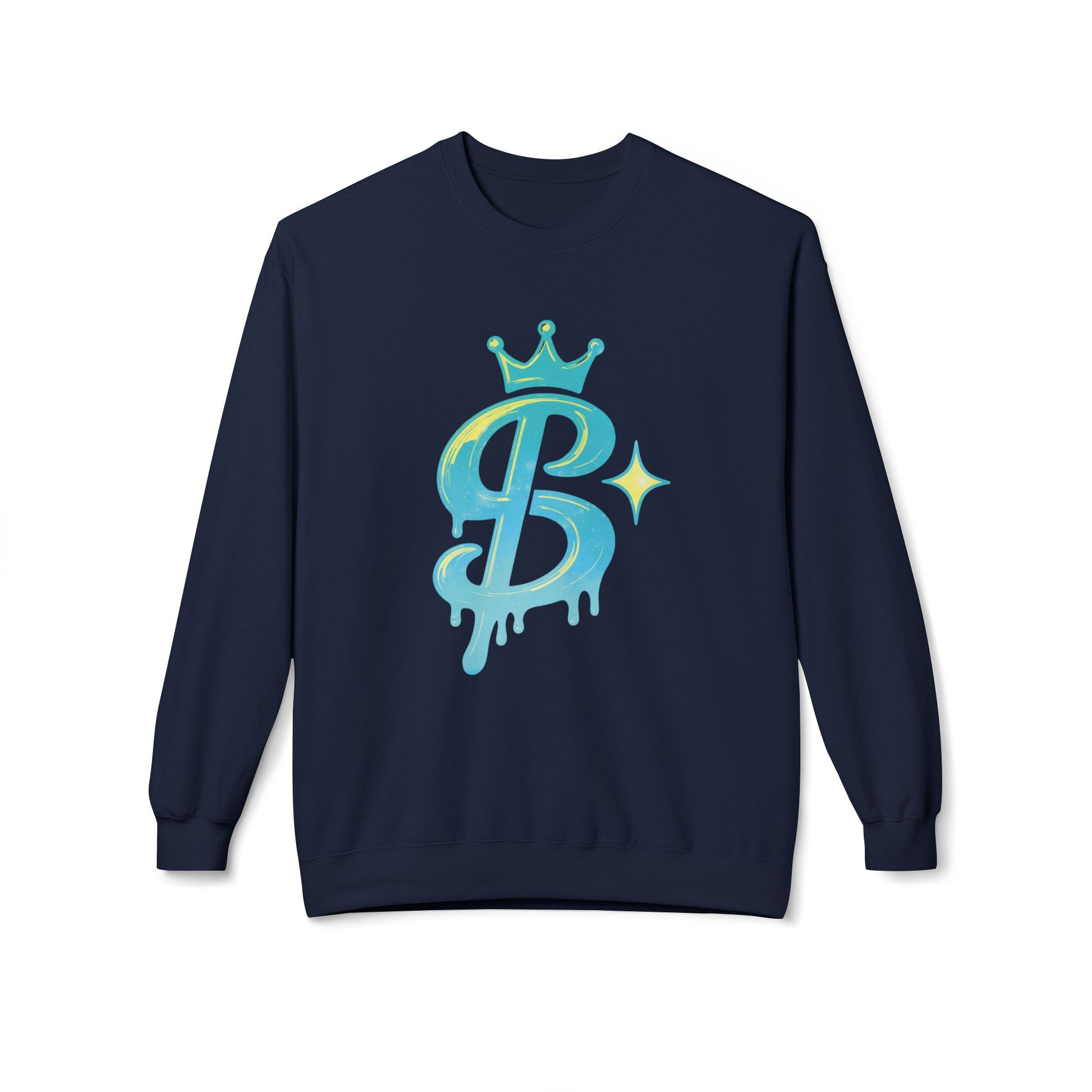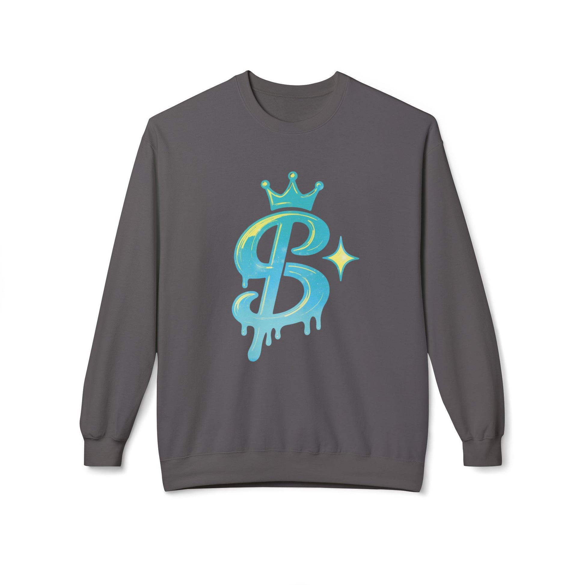 This midweight crewneck brings a playful street-art vibe to relaxed, everyday wear. The soft, slightly substantial fabric holds the bright, dripping “B” graphic with a glossy pop — think hand-painted mural meets cozy layering. Wear it over a tee while running errands, out for late-night coffee, or lounging at home. The dropped shoulders and classic fit create an easy silhouette that slips under a jacket or stands alone as a statement. The graphic’s crown and sparkle details add a bit of confident flair without shouting, so it sits comfortably in a closet built for creative, casual days and low-key nights.