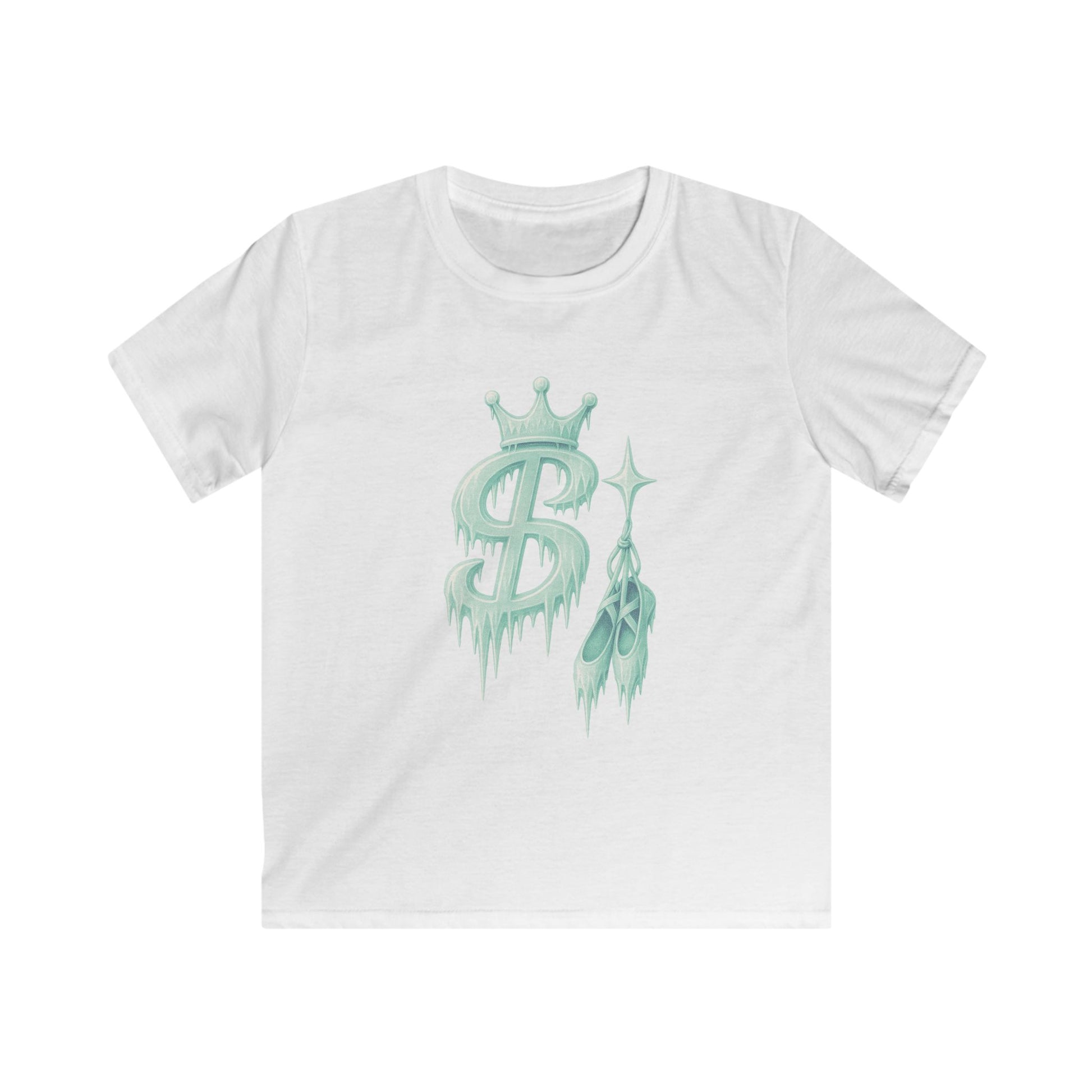 Light, playful, and just a little bit rebellious — this kids tee wears attitude like a badge. A mint-green dripping dollar sign crowned with a tiny crown and paired with a feathered charm sits softly on a crisp white shirt, giving it a streetwise, artsy vibe without shouting. The fabric feels smooth and breathable; the tubular knit and ribbed collar keep the silhouette neat after washes. It sits true to size with a classic cut, so it layers easily under jackets or stands on its own for backyard hangs, skate sessions, or casual family outings.