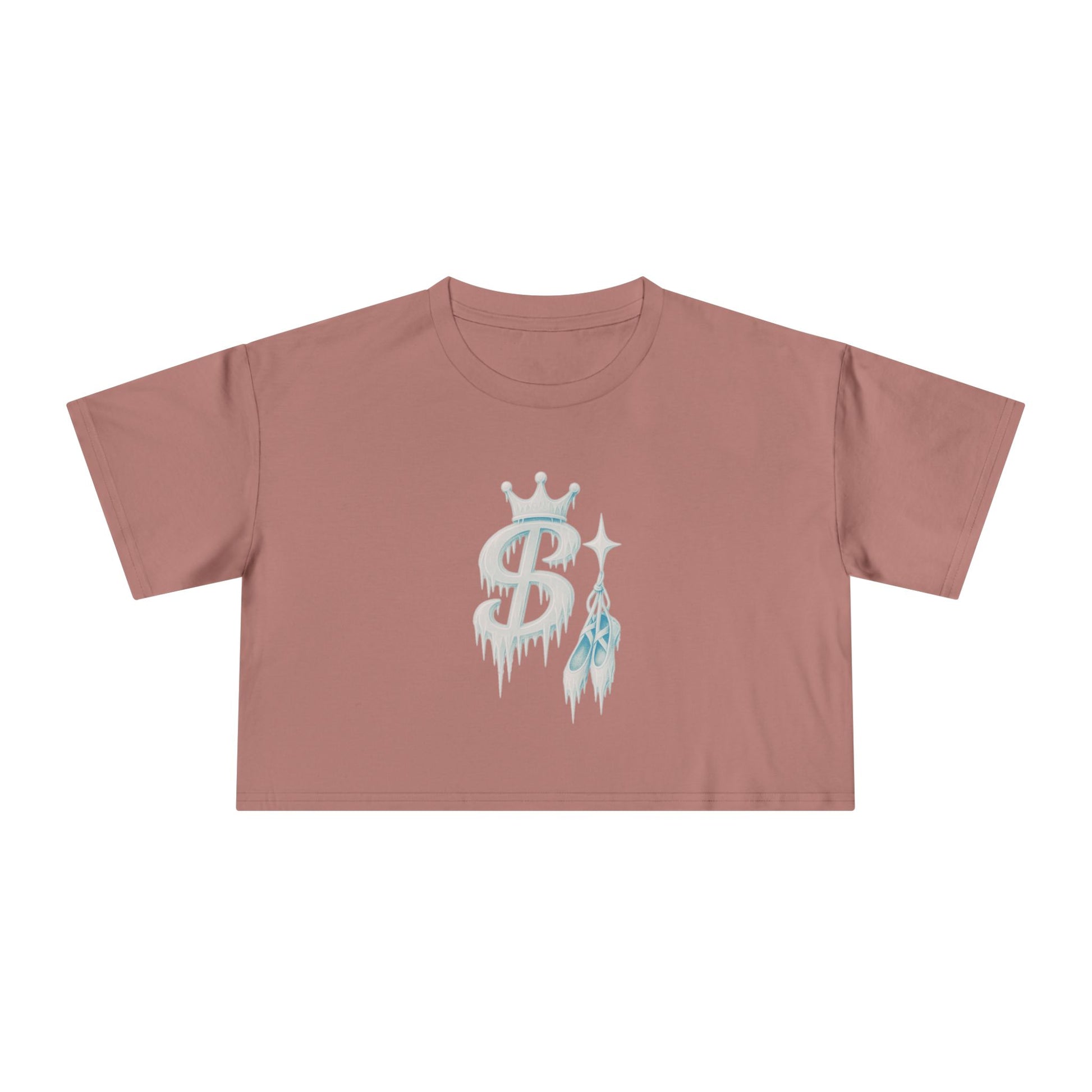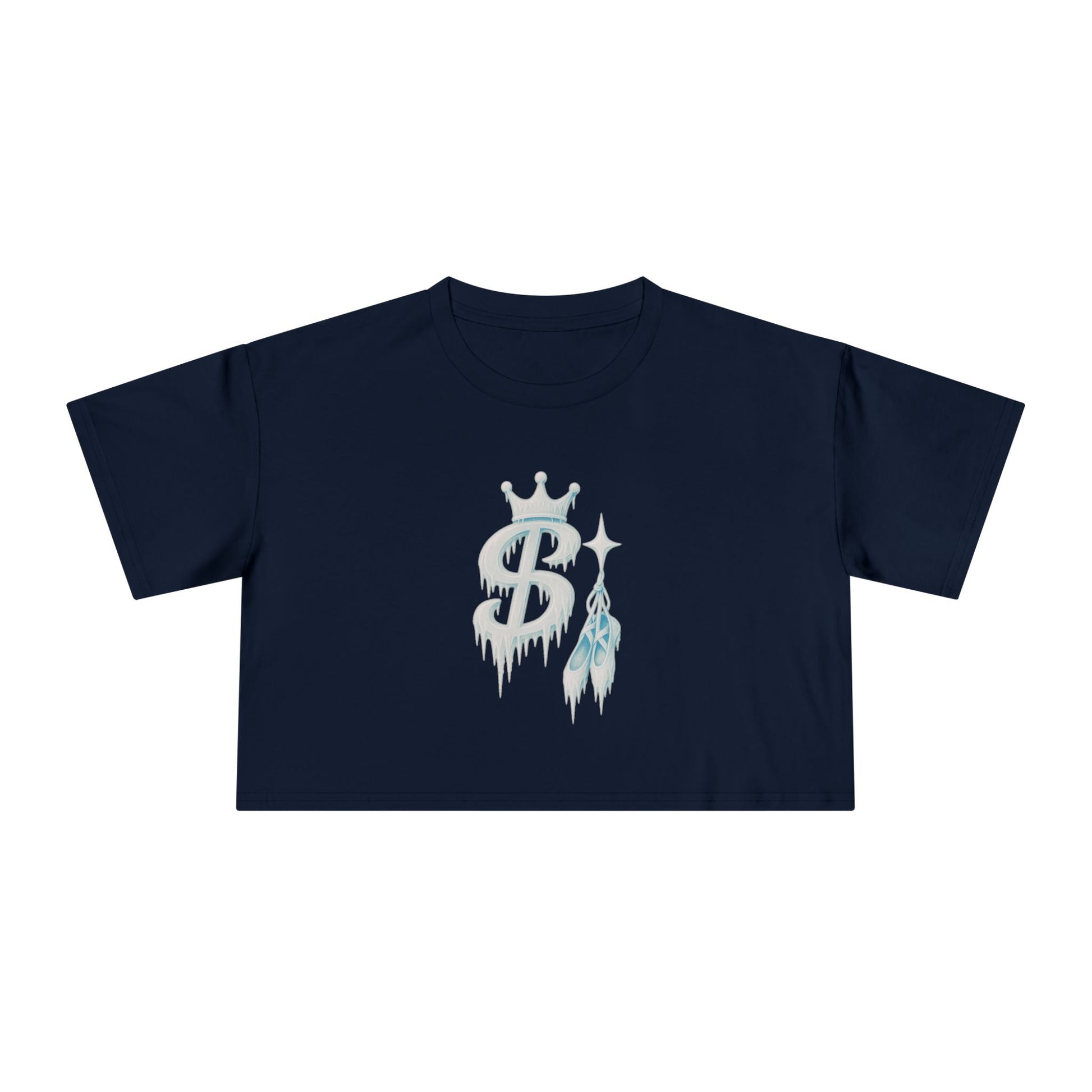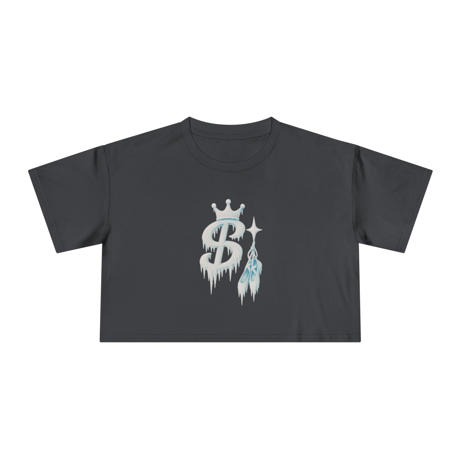 A relaxed crop tee that feels like a quiet flex. The soft, medium-weight cotton drapes with dropped shoulders for an easy, lived-in silhouette. The front features a frosted, icy emblem with a subtle crown and sparkling accents — a low-key statement that reads bold up close and understated from afar. Wear it layered over a long-sleeve, with high-waist denim, or under an open flannel for nights when you want to lean into cool without shouting. Breathable, slightly boxy, and built to hold its shape through repeat wear, it becomes a favorite fast: the kind of top you reach for when you want comfort and attitude in the same piece.